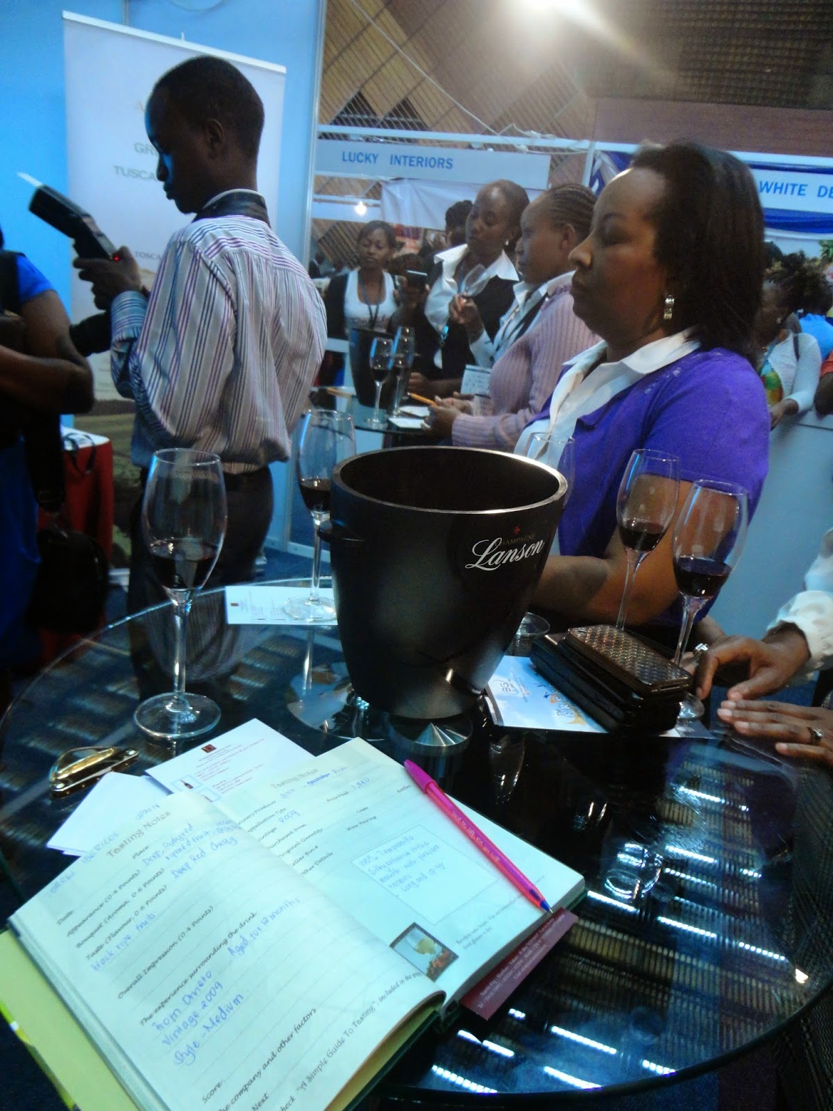 Winetasting is an affair you want to have. It is always fun. And it is even better when the facilitator knows his stuff. Domaine Kenya was having wine tasting sessions at The Kenya Hospitality Trade Fair on 15thMay 2014. Day 1 went well. The facilitator, Kipchumba, had great insights eloquence and he knew his wine. He projected his wine notes on a screen so that people could jot down stuff as the session continued.
