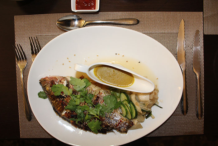 I asked him what inspired him to create the special menu that he did during our review of Amber Hotel. He says, “For the Ribeye Steak, that is a French way of serving things. I have worked in French Restaurants so I drew my inspiration from there. For the Pork belly, the whole meal was skewed towards the Asian Style of service. I traveled a bit to South East Asia and that is how I got some influences in cooking. We also had Tilapia which is a classic Kenyan dish. We get our fish from Kisumu every morning and we ensure that the fish is fresh. Our Kenyan clients always enjoy this meal. We also add few ingredients to the fish, garlic being the main one. Other ingredients are kimchi salad (fermented for months) and sesame. Kimchi is from Korea and so you can see that all the dishes are from different parts of the world. You will get to enjoy his continental menu”. He fuses all these styles of cooking, but in such a way that the flavours balance. Two of his favorite meals were the pork rib eye and the whole tilapia. If you ever visit this restaurant, you can try the chef specials. There are few items in the menu that are a bit contemporary like burgers and chips etc.
